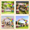 1.Size and Design: This inflatable decoration is 10ft in height and features a vibrant rainbow birthday cake design. The arch-shaped structure creates an eye-catching centerpiece for birthday celebrations.