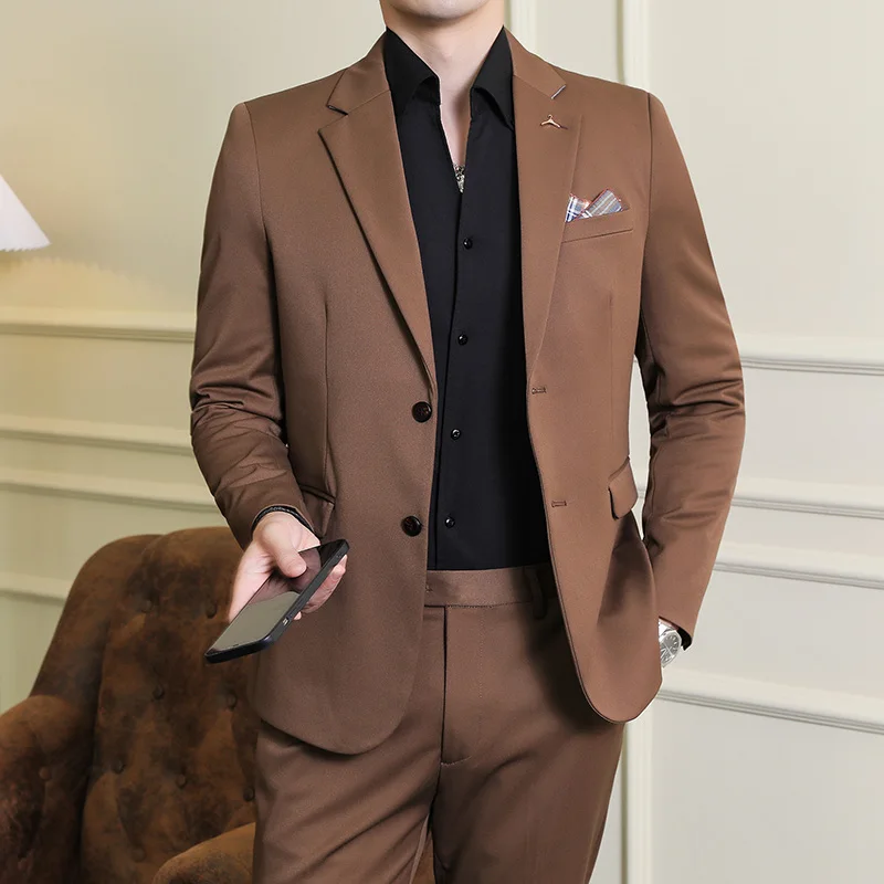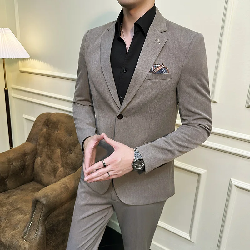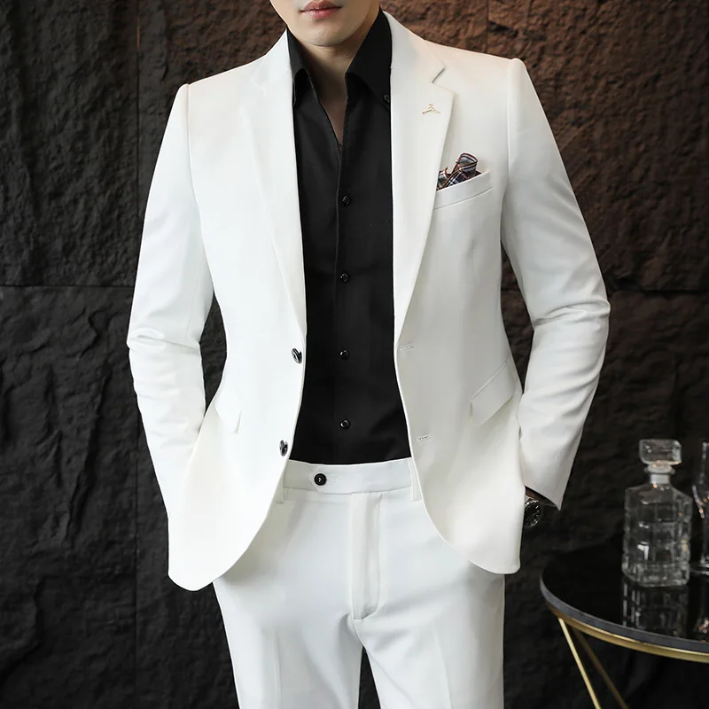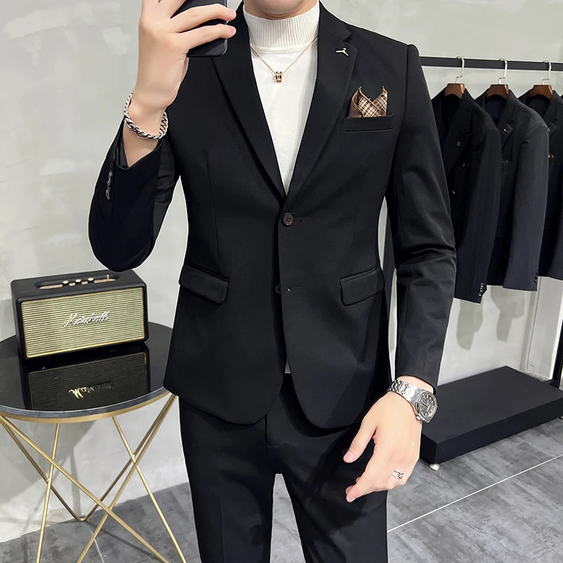 2024 Two-button Business Wedding Suit (suit + Trousers) S-7XL Korean Slim Fashion Handsome Solid Color Suit Two-piece Set