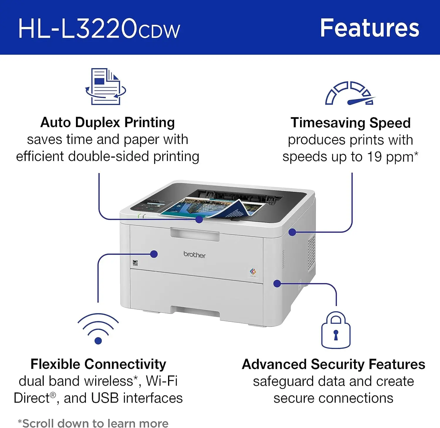 Brother HL-L3220CDW Wireless Compact Digital Color Printer with Laser Quality Output, Duplex and Mobile Device Printing | Includes 4 Month Refresh Subscription Trial¹, Dash Replenishment Ready