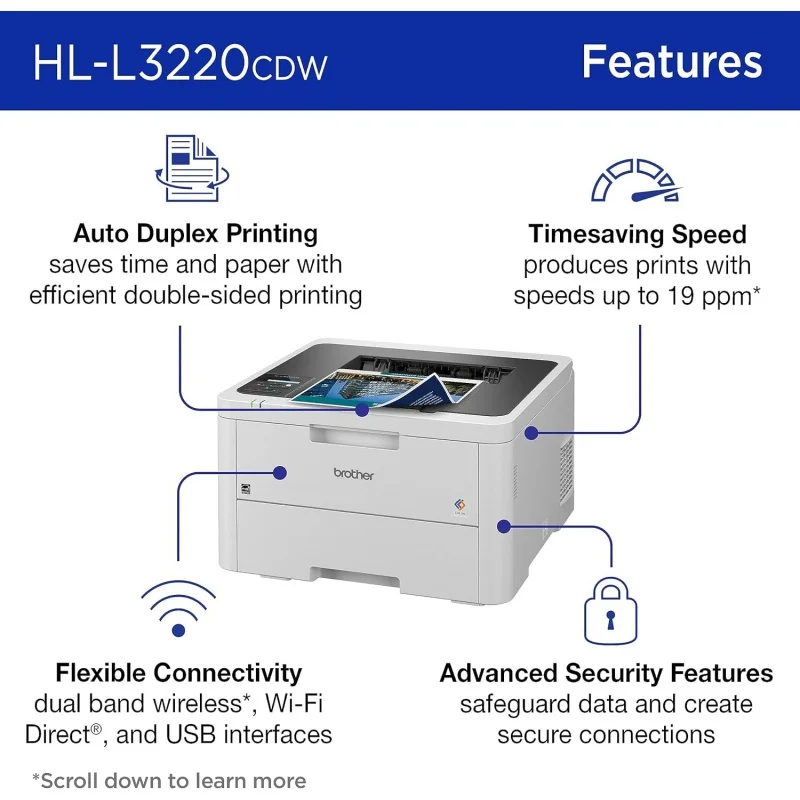 - BEST FOR HOMES & HOME OFFICES – Upgrade your professional documents with the consistent dependability of laser-quality color printing. The Brother HL-L3220CDW compact printer creates high-impact, smudge-free color documents that don’t break the bank