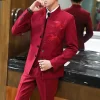 Fashion Crane Embroidery Stand Collar Men’s Casual 3 Pcs Suit Set Male Jacket Groom Wedding Dress Blazers Dress Trousers Vest