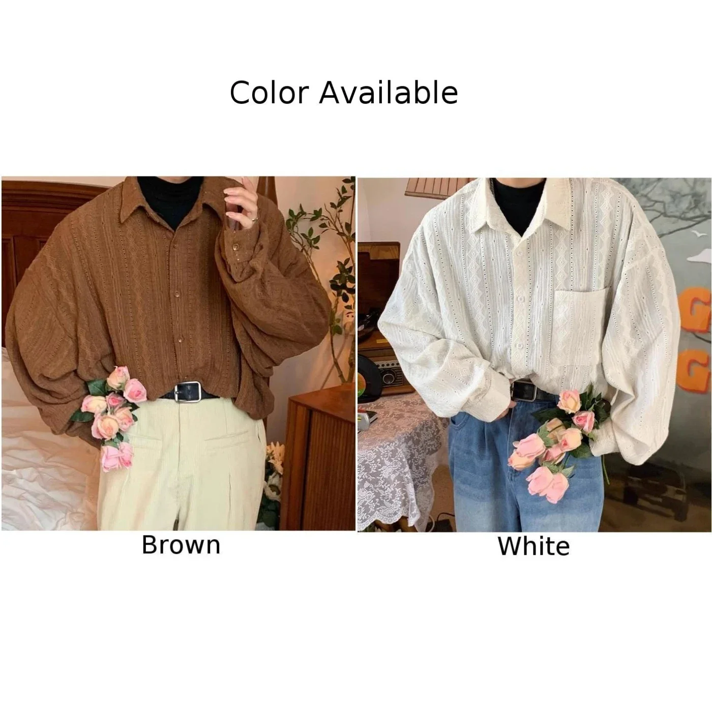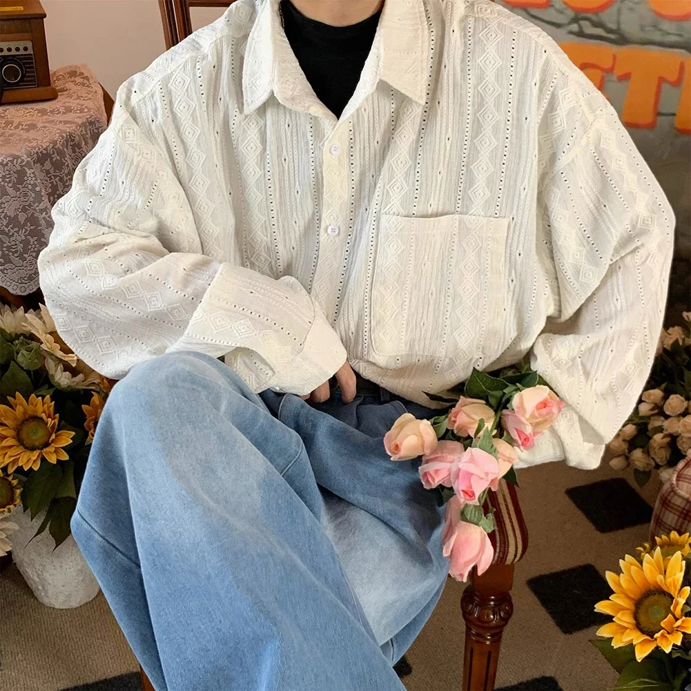 * Item Features:Men,Handsome Lapel Shirts,Hollow Out Sexy Fashion Blouse,Mesh Long Sleeve Tops,Vacation