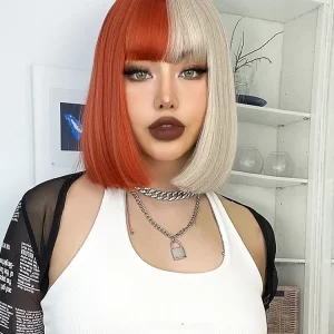Blonde Red Short Bob Wig Synthetic Wig For Women With Bangs Lolita Cosplay Party Natural Hair Heat Resistant Fiber Wigs